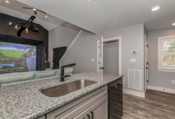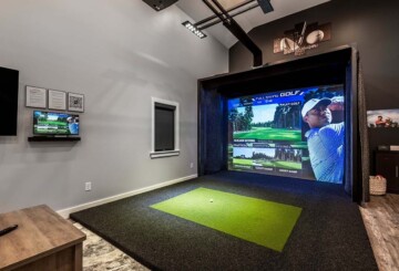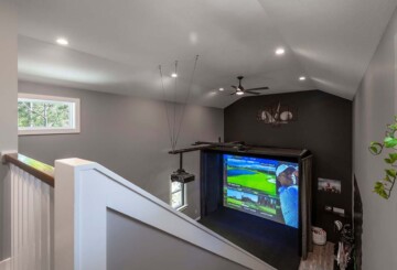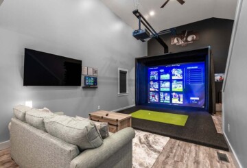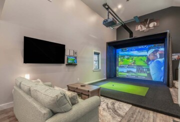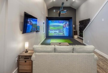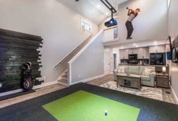 The entire home is available with overnight rentals only. Hourly golf simulator rentals are welcomed to the kitchen, downstairs bathrooms, and living room.