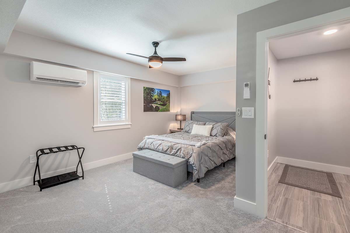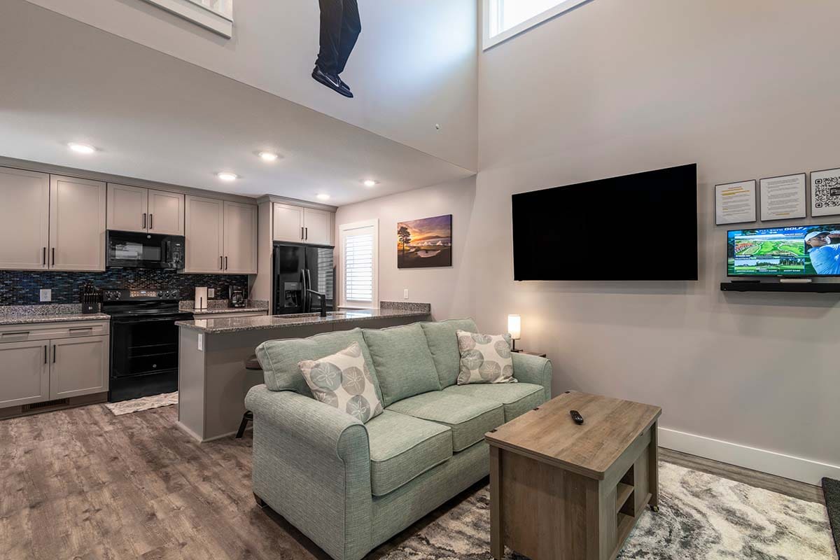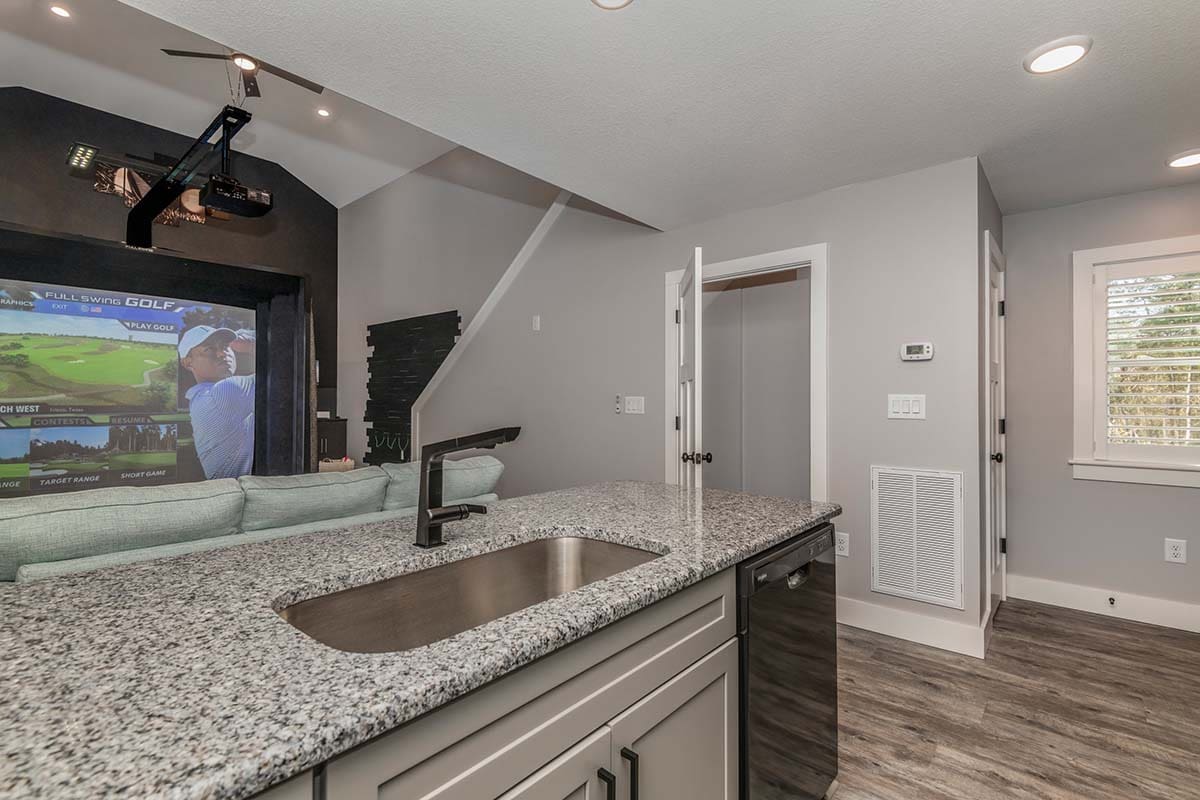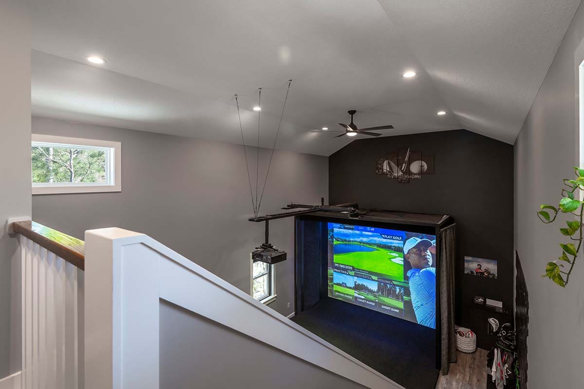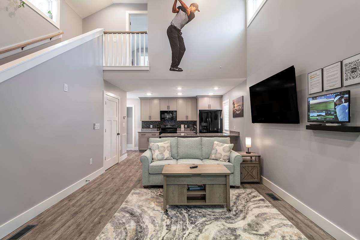 The entire home is available with overnight rentals only. Hourly golf simulator rentals are welcomed to the kitchen, downstairs bathrooms, and living room.